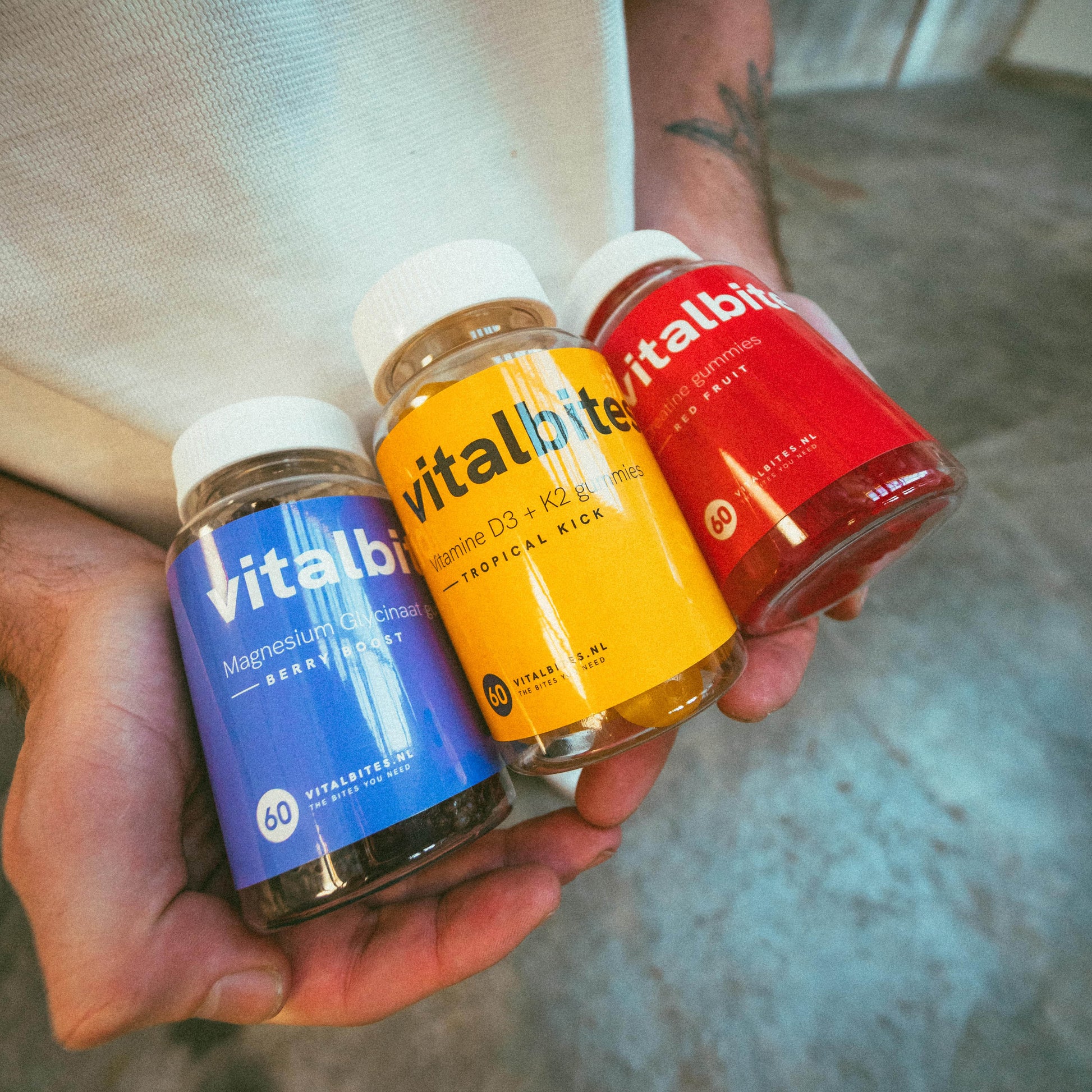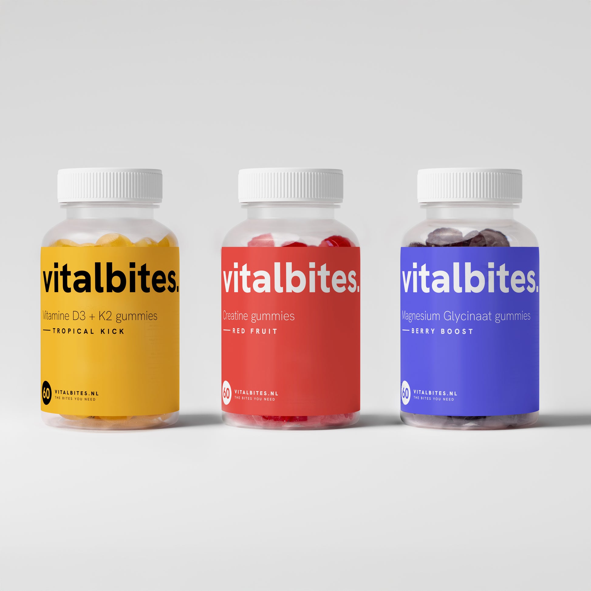 De aanbevolen dosering is 2 gummies per dag voor de creatine en de vitamine D3 + K2. De aanbevolen dosering voor magnesium is 1 gummy per dag.